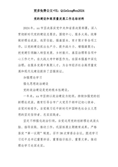 【七哥公文】2025年:党的建设和高质量发展工作总结+更多免费公文+VX:QiGeGongWen2024+更多免费公文+VX:QiGeGongWen2024