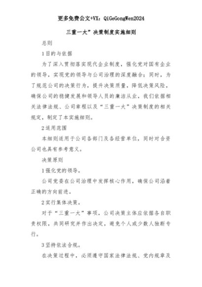 【七哥公文】2025年:三重一大”决策制度实施细则+更多免费公文+VX:QiGeGongWen2024+更多免费公文+VX:QiGeGongWen2024