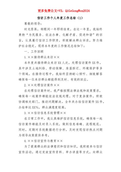 【七哥公文】2025年:(2篇)信访工作个人年度工作总结汇编+更多免费公文+VX:QiGeGongWen2024+更多免费公文+VX:QiGeGongWen2024