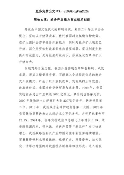 【七哥公文】2025年:理论文章:提升开放能力重在制度创新+更多免费公文+VX:QiGeGongWen2024+更多免费公文+VX:QiGeGongWen2024