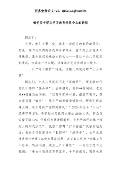 【七哥公文】2025年:镇党委书记在学习教育动员会上的讲话+更多免费公文+VX:QiGeGongWen2024+更多免费公文+VX:QiGeGongWen2024