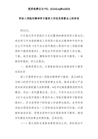 【七哥公文】2025年:科协八项规定精神学习教育工作动员部署会上的讲话+更多免费公文+VX:QiGeGongWen2024+更多免费公文+VX:QiGeGongWen2024