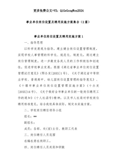 【七哥公文】2025年:(2篇)事业单位岗位设置及聘用实施方案集合+更多免费公文+VX:QiGeGongWen2024+更多免费公文+VX:QiGeGongWen2024
