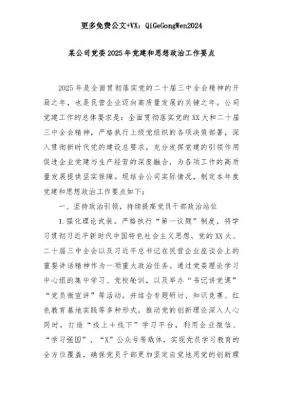 【七哥公文】2025年:某公司党委2025年党建和思想政治工作要点+更多免费公文+VX:QiGeGongWen2024+更多免费公文+VX:QiGeGongWen2024