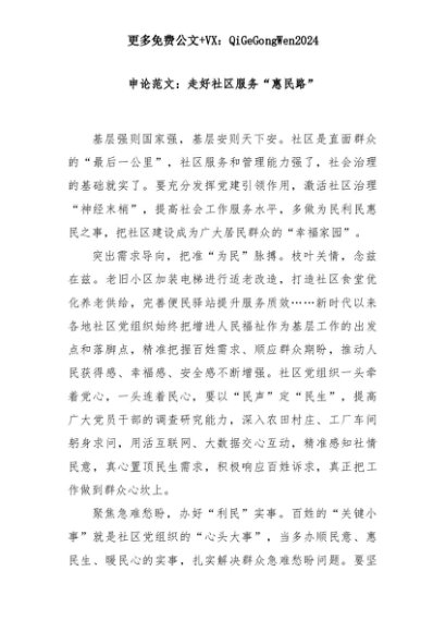 【七哥公文】2025年:申论范文:走好社区服务“惠民路”+更多免费公文+VX:QiGeGongWen2024+更多免费公文+VX:QiGeGongWen2024