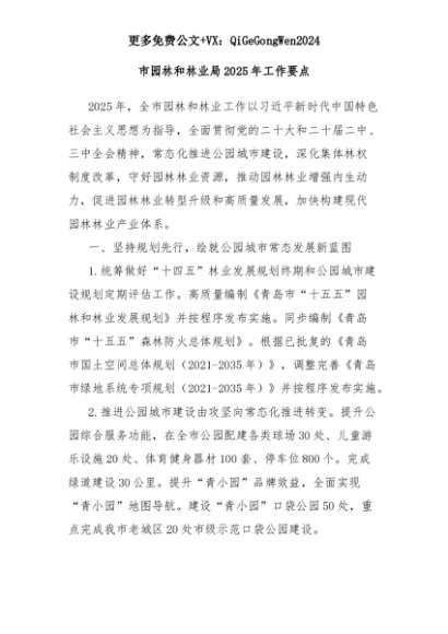 【七哥公文】2025年:市园林和林业局2025年工作要点+更多免费公文+VX:QiGeGongWen2024+更多免费公文+VX:QiGeGongWen2024