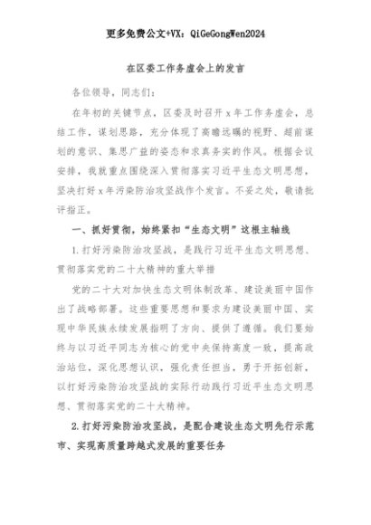 【七哥公文】2025年:在区委工作务虚会上的发言+更多免费公文+VX:QiGeGongWen2024+更多免费公文+VX:QiGeGongWen2024