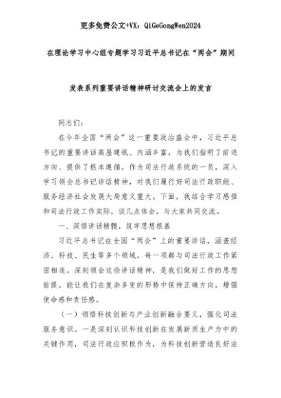 【七哥公文】2025年:在理论学习中心组专题学习习近平总书记在“两会”期间发表系列重要讲话精神研讨交流会上的发言+更多免费公文+VX:QiGeGongWen2024+更多免费公文+VX:QiGeGongWen2024
