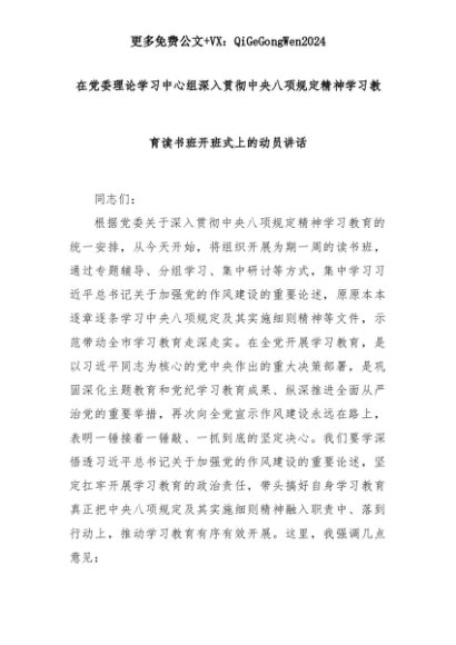 【七哥公文】2025年:在党委理论学习中心组深入贯彻中央八项规定精神学习教育读书班开班式上的动员讲话+更多免费公文+VX:QiGeGongWen2024+更多免费公文+VX:QiGeGongWen2024