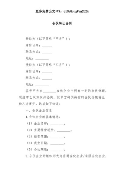 【七哥公文】2025年:合伙转让合同+更多免费公文+VX:QiGeGongWen2024+更多免费公文+VX:QiGeGongWen2024