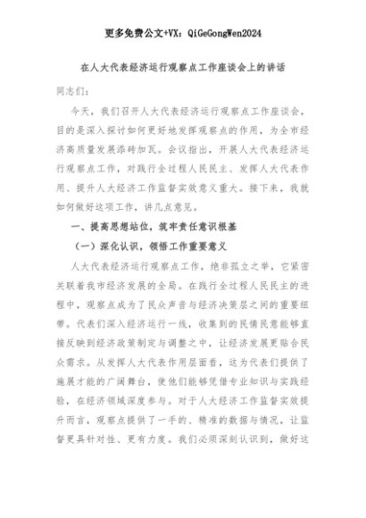【七哥公文】2025年:在人大代表经济运行观察点工作座谈会上的讲话+更多免费公文+VX:QiGeGongWen2024+更多免费公文+VX:QiGeGongWen2024