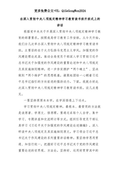【七哥公文】2025年:在深入贯彻中央八项规定精神学习教育读书班开班式上的讲话+更多免费公文+VX:QiGeGongWen2024+更多免费公文+VX:QiGeGongWen2024