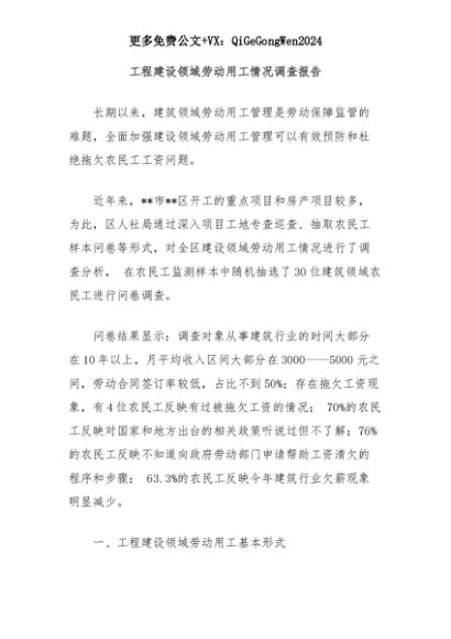 【七哥公文】2025年:工程建设领域劳动用工情况调查报告+更多免费公文+VX:QiGeGongWen2024+更多免费公文+VX:QiGeGongWen2024