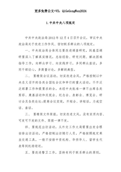 【七哥公文】2025年:1.中共中央八项规定+更多免费公文+VX:QiGeGongWen2024+更多免费公文+VX:QiGeGongWen2024