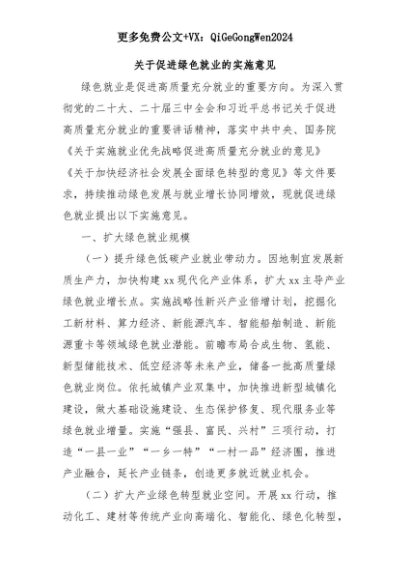 【七哥公文】2025年:关于促进绿色就业的实施意见+更多免费公文+VX:QiGeGongWen2024+更多免费公文+VX:QiGeGongWen2024