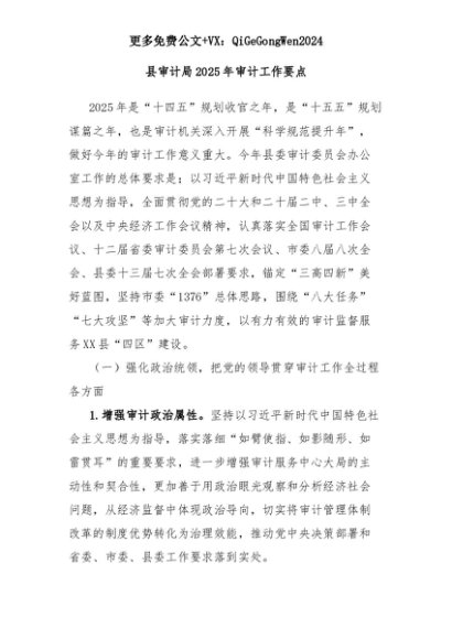 【七哥公文】2025年:县审计局2025年审计工作要点+更多免费公文+VX:QiGeGongWen2024+更多免费公文+VX:QiGeGongWen2024