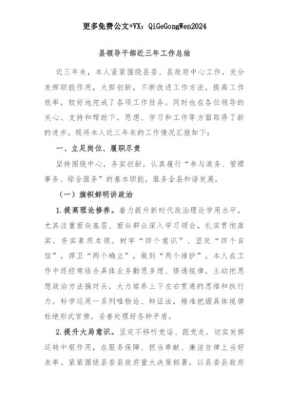 【七哥公文】2025年:县领导干部近三年工作总结+更多免费公文+VX:QiGeGongWen2024+更多免费公文+VX:QiGeGongWen2024