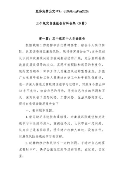 【七哥公文】2025年:(9篇)三个规定自查报告材料合集+更多免费公文+VX:QiGeGongWen2024+更多免费公文+VX:QiGeGongWen2024