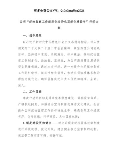 【七哥公文】2025年:公司“纪检监察工作规范化法治化正规化建设年”行动方案+更多免费公文+VX:QiGeGongWen2024+更多免费公文+VX:QiGeGongWen2024