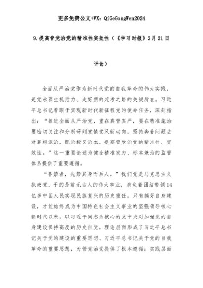 【七哥公文】2025年:9.提高管党治党的精准性实效性(《学习时报》3月21日评论)+更多免费公文+VX:QiGeGongWen2024+更多免费公文+VX:QiGeGongWen2024
