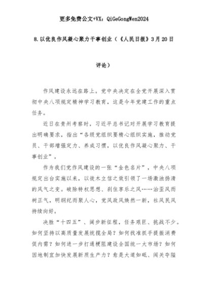 【七哥公文】2025年:8.以优良作风凝心聚力干事创业(《人民日报》3月20日评论)+更多免费公文+VX:QiGeGongWen2024+更多免费公文+VX:QiGeGongWen2024