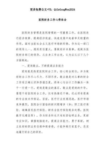 【七哥公文】2025年:医院财务工作心得体会+更多免费公文+VX:QiGeGongWen2024+更多免费公文+VX:QiGeGongWen2024
