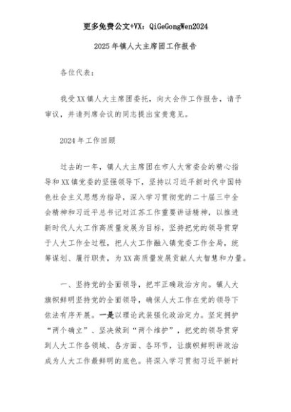 【七哥公文】2025年:2025年镇人大主席团工作报告+更多免费公文+VX:QiGeGongWen2024+更多免费公文+VX:QiGeGongWen2024