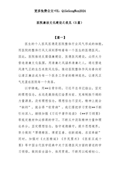 【七哥公文】2025年:(5篇)医院廉洁文化建设之我见+更多免费公文+VX:QiGeGongWen2024+更多免费公文+VX:QiGeGongWen2024