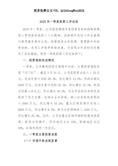 【七哥公文】2025年:2025年一季度经营工作总结+更多免费公文+VX:QiGeGongWen2024+更多免费公文+VX:QiGeGongWen2024