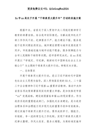 【七哥公文】2025年:Xx市xx局关于开展“干部素质大提升年”行动的实施方案+更多免费公文+VX:QiGeGongWen2024+更多免费公文+VX:QiGeGongWen2024