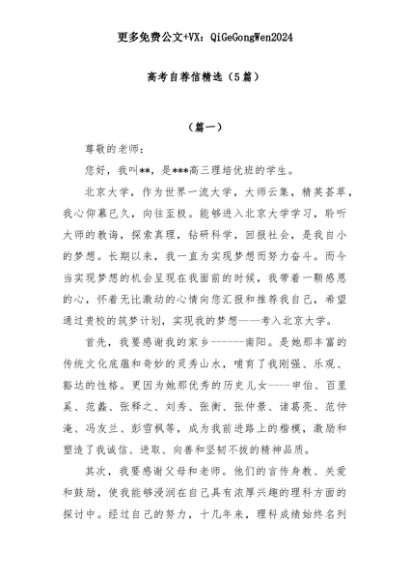 【七哥公文】2025年:(5篇)高考自荐信精选+更多免费公文+VX:QiGeGongWen2024+更多免费公文+VX:QiGeGongWen2024