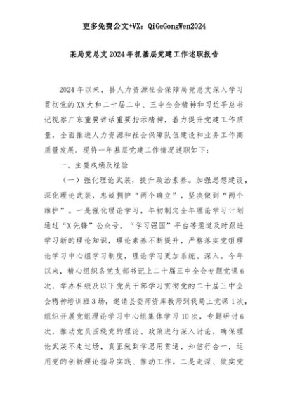 【七哥公文】2025年:某局党总支2024年抓基层党建工作述职报告+更多免费公文+VX:QiGeGongWen2024+更多免费公文+VX:QiGeGongWen2024