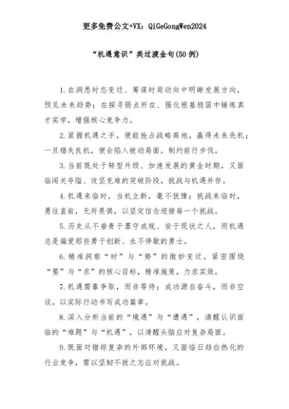【七哥公文】2025年:(50例)“机遇意识”类过渡金句+更多免费公文+VX:QiGeGongWen2024+更多免费公文+VX:QiGeGongWen2024