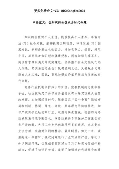 【七哥公文】2025年:申论范文:让知识的价值成为时代命题+更多免费公文+VX:QiGeGongWen2024+更多免费公文+VX:QiGeGongWen2024