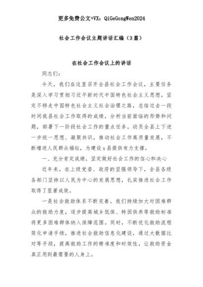 【七哥公文】2025年:(3篇)社会工作会议主题讲话汇编+更多免费公文+VX:QiGeGongWen2024+更多免费公文+VX:QiGeGongWen2024