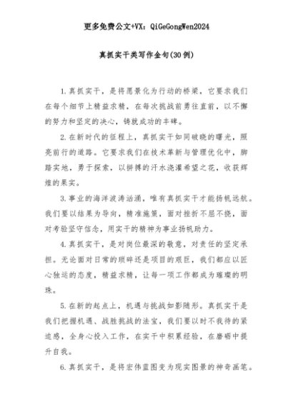 【七哥公文】2025年:(30例)真抓实干类写作金句+更多免费公文+VX:QiGeGongWen2024+更多免费公文+VX:QiGeGongWen2024