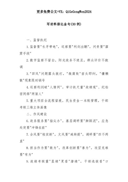 【七哥公文】2025年:(30例)写材料排比金句+更多免费公文+VX:QiGeGongWen2024+更多免费公文+VX:QiGeGongWen2024