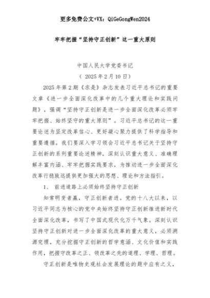 【七哥公文】2025年:牢牢把握“坚持守正创新”这一重大原则+更多免费公文+VX:QiGeGongWen2024+更多免费公文+VX:QiGeGongWen2024