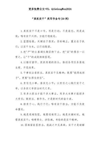 【七哥公文】2025年:(30例)“真抓实干”类写作金句+更多免费公文+VX:QiGeGongWen2024+更多免费公文+VX:QiGeGongWen2024