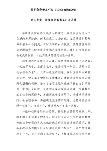 【七哥公文】2025年:申论范文:加强和创新基层社会治理+更多免费公文+VX:QiGeGongWen2024+更多免费公文+VX:QiGeGongWen2024