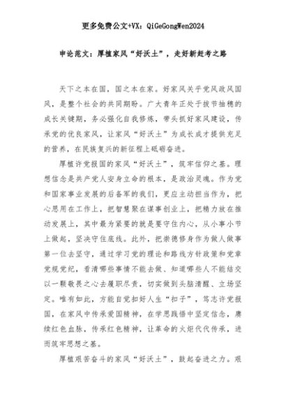 【七哥公文】2025年:申论范文:厚植家风“好沃土”,走好新赶考之路+更多免费公文+VX:QiGeGongWen2024+更多免费公文+VX:QiGeGongWen2024
