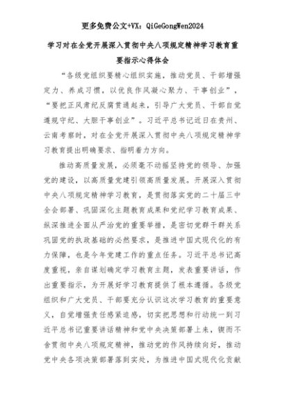 【七哥公文】2025年:学习对在全党开展深入贯彻中央八项规定精神学习教育重要指示心得体会+更多免费公文+VX:QiGeGongWen2024+更多免费公文+VX:QiGeGongWen2024