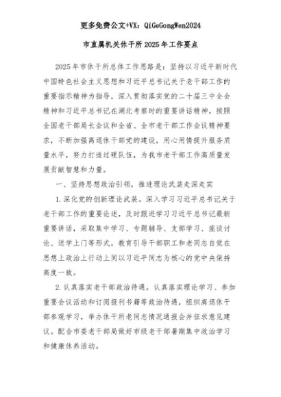 【七哥公文】2025年:市直属机关休干所2025年工作要点+更多免费公文+VX:QiGeGongWen2024+更多免费公文+VX:QiGeGongWen2024