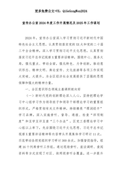 【七哥公文】2025年:宣传办公室2024年度工作开展情况及2025年工作谋划+更多免费公文+VX:QiGeGongWen2024+更多免费公文+VX:QiGeGongWen2024