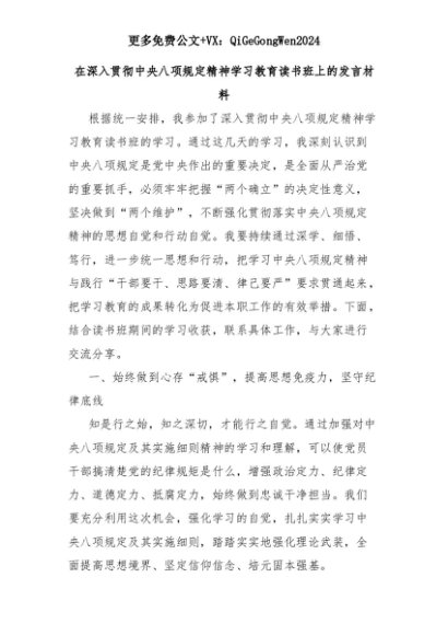 【七哥公文】2025年:在深入贯彻中央八项规定精神学习教育读书班上的发言材料+更多免费公文+VX:QiGeGongWen2024+更多免费公文+VX:QiGeGongWen2024