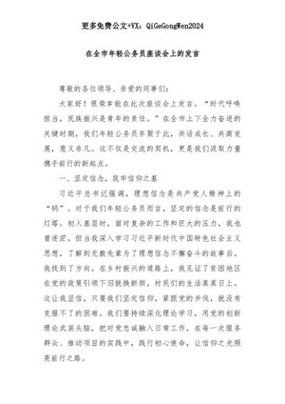 【七哥公文】2025年:在全市年轻公务员座谈会上的发言+更多免费公文+VX:QiGeGongWen2024+更多免费公文+VX:QiGeGongWen2024