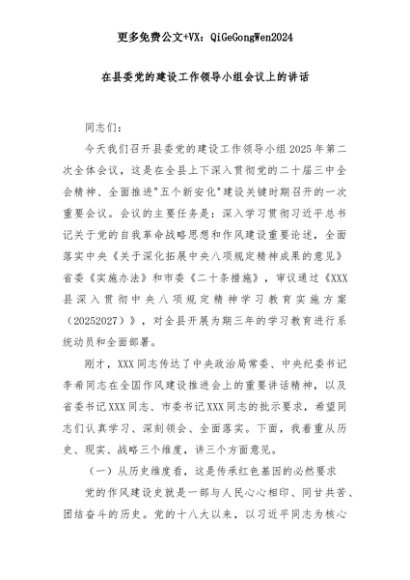 【七哥公文】2025年:在县委党的建设工作领导小组会议上的讲话+更多免费公文+VX:QiGeGongWen2024+更多免费公文+VX:QiGeGongWen2024