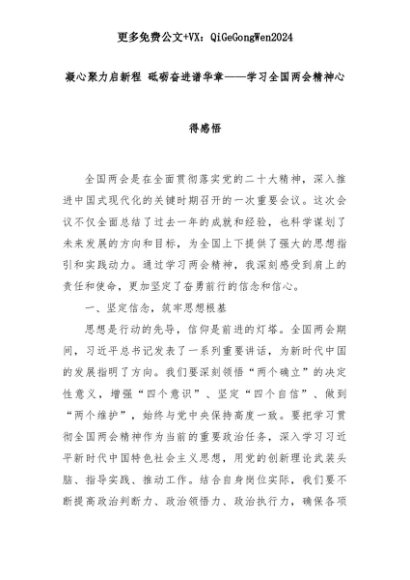 【七哥公文】2025年:凝心聚力启新程 砥砺奋进谱华章——学习全国两会精神心得感悟+更多免费公文+VX:QiGeGongWen2024+更多免费公文+VX:QiGeGongWen2024