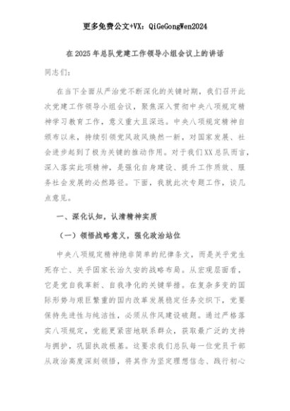 【七哥公文】2025年:在2025年总队党建工作领导小组会议上的讲话+更多免费公文+VX:QiGeGongWen2024+更多免费公文+VX:QiGeGongWen2024