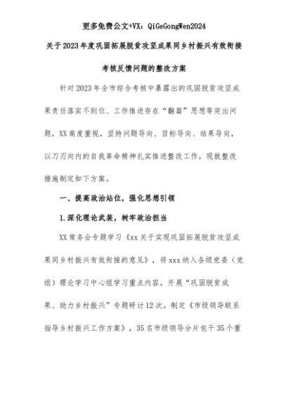【七哥公文】2025年:关于 2023 年度巩固拓展脱贫攻坚成果同乡村振兴有效衔接考核反馈问题的整改方案+更多免费公文+VX:QiGeGongWen2024+更多免费公文+VX:QiGeGongWen2024